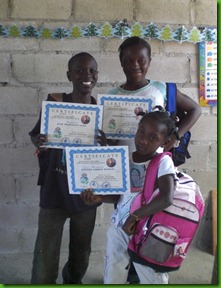 On December 23rd, we hosted a Christmas party at the school for the preschoolers and older students.  We made 60 cupcakes and packed 60 backpacks full of a Bible, popcorn, a candy cane, lollipops, a salvation bracelet, a pencil, and an orange (which I bought from the same student that always gives me oranges…his mom was shocked at such a large purchase)!  Shawn shared the real meaning of Christmas to the students.  We also recognized three outstanding students for their behavior and grades.  They received a certificate and a nice backpack supplied by John and Karen Shaffer.  The kids enjoyed singing, making crafts, and eating their snacks.  They were so impressed that I knew how to make cupcakes (from a box!)…these kids are definitely good for the self-esteem!  Some students were asked to share what they were thankful for.  One student said that he was thankful for the opportunity that he was being given because of the school…I still smile thinking about him saying that.  It reaffirmed my place here all over again.  This school is impacting these children and they realize what a great opportunity it is for them.  As I was leaving, quite a few students came up to me privately and asked if I was ever coming back.  It broke my heart that they thought I might never come back after the robbery.  I assured them that I would be back and that they better be ready to learn more!  The love that they show me amazes me over and over again!  When/if I leave, it will break my heart to think that I may never see my kids again.